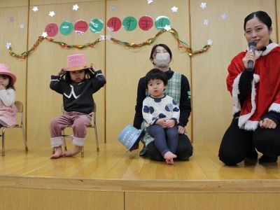 2024-12-24 クリスマス・誕生会 今日は12月生まれのお誕生会とクリスマス会がありました☆サンタさん登場に子どもたちは大喜びプレゼントももらい嬉しそうでしたよ(^v^)12月生まれのお友だちおめでとう&MaryXmas☆